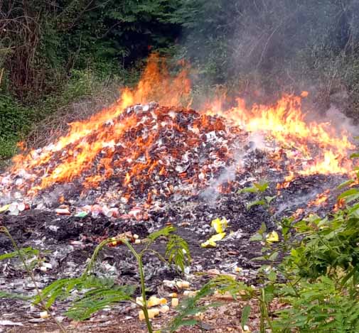 Berdasarkan hasil pantauan, di lokasi yang tak jauh dari Jalan Mangkubumi-Indihiang (Mangin) itu, ditemukan tumpukan sampah produk yang sudah dibakar dan menggunung di beberapa titik.