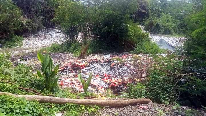 “Kondisinya memprihatinkan. Area pembuangan tampak dipenuhi berbagai jenis limbah, seperti produk makanan kedaluwarsa, limbah kelapa, hingga material yang diduga limbah non-organik, juga ada bekas pembakaran di sejumlah titik,” jelasnya.
