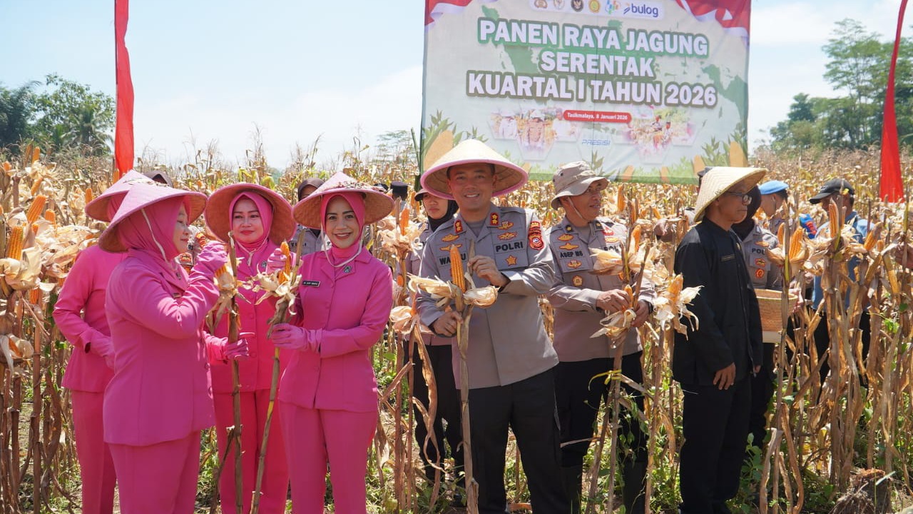 INILAHTASIK.COM | Upaya memperkokoh ketahanan pangan nasional terus diwujudkan Polres Tasikmalaya bersama pemerintah daerah dan masyarakat. Salah satunya melalui kegiatan Panen Raya Jagung Serentak Kuartal I Tahun 2026 yang digelar di Desa Margajaya, Kecamatan Mangunreja, Kamis 08 Januari 2026.